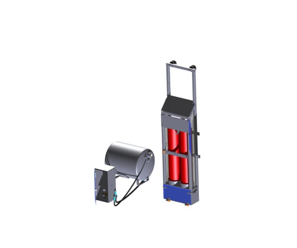 Sistema auxiliar no combate a incêndios acionado manualmente, composto por extintor de pó químico com grande capacidade e um conjunto de aspersão em pontos críticos da máquina-base. Um reservatório de água pressurizada em uma mangueira com esguicho completa o equipamento.